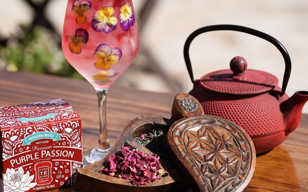 Infusionamos por tres minutos y terminamos con un flores violetas como garnish.