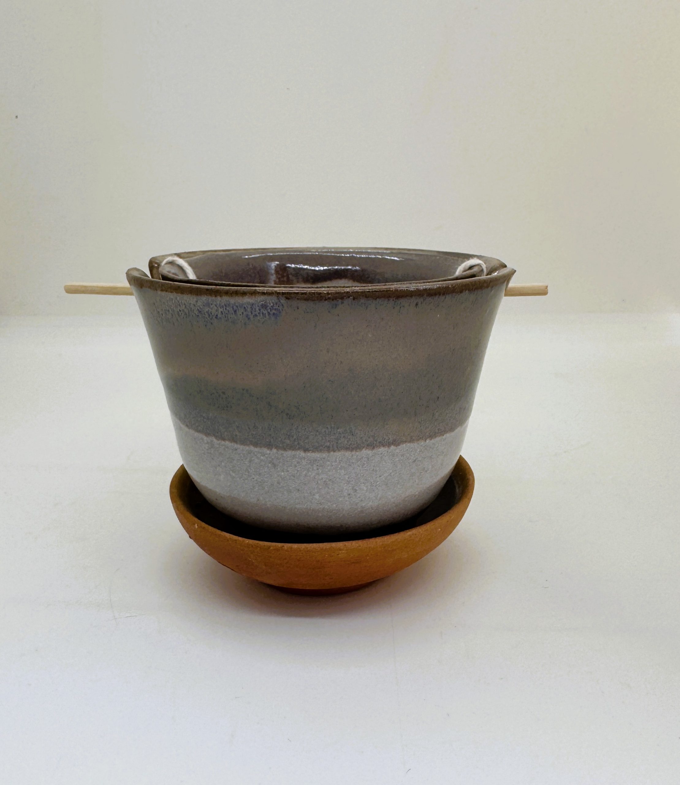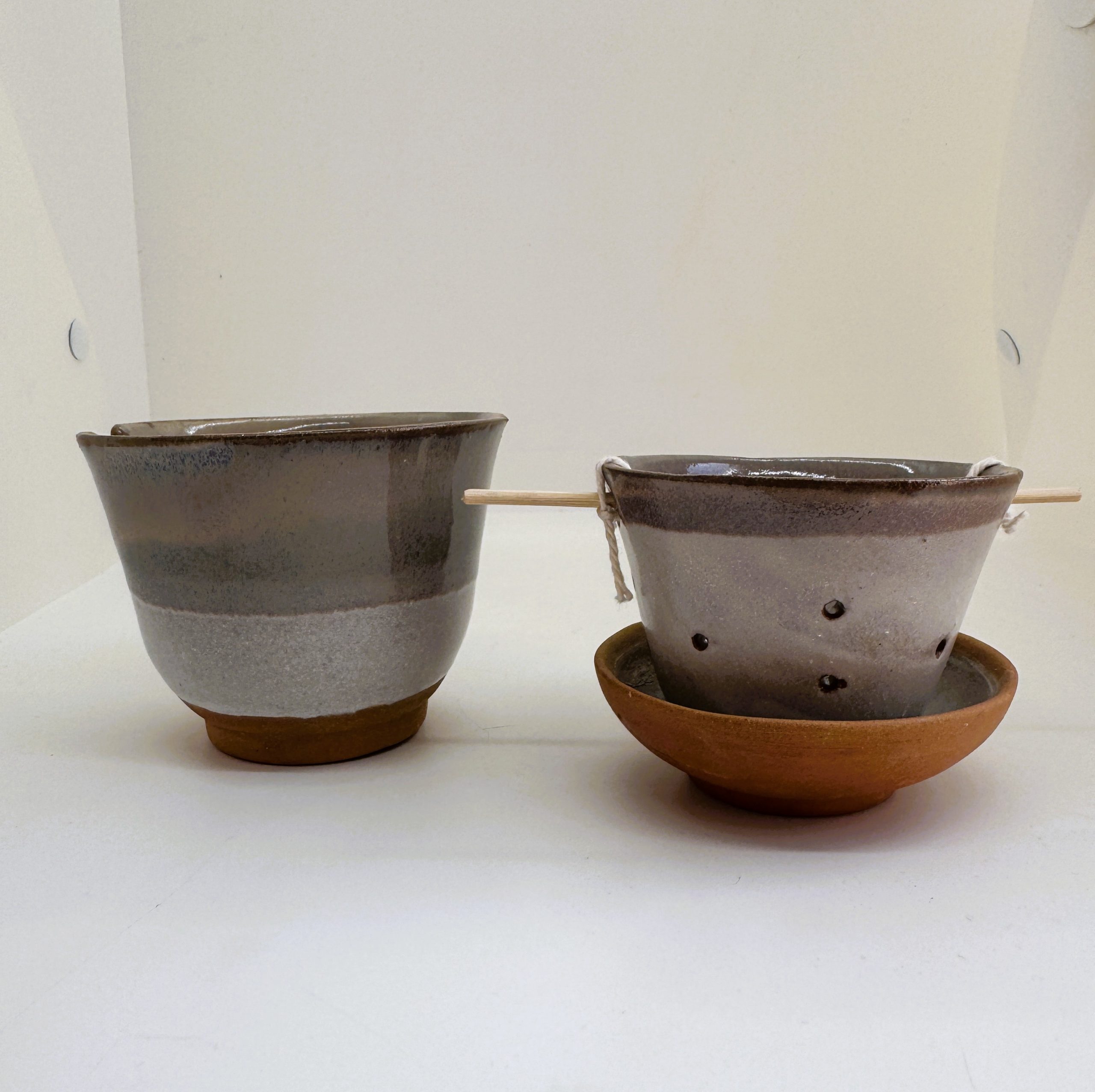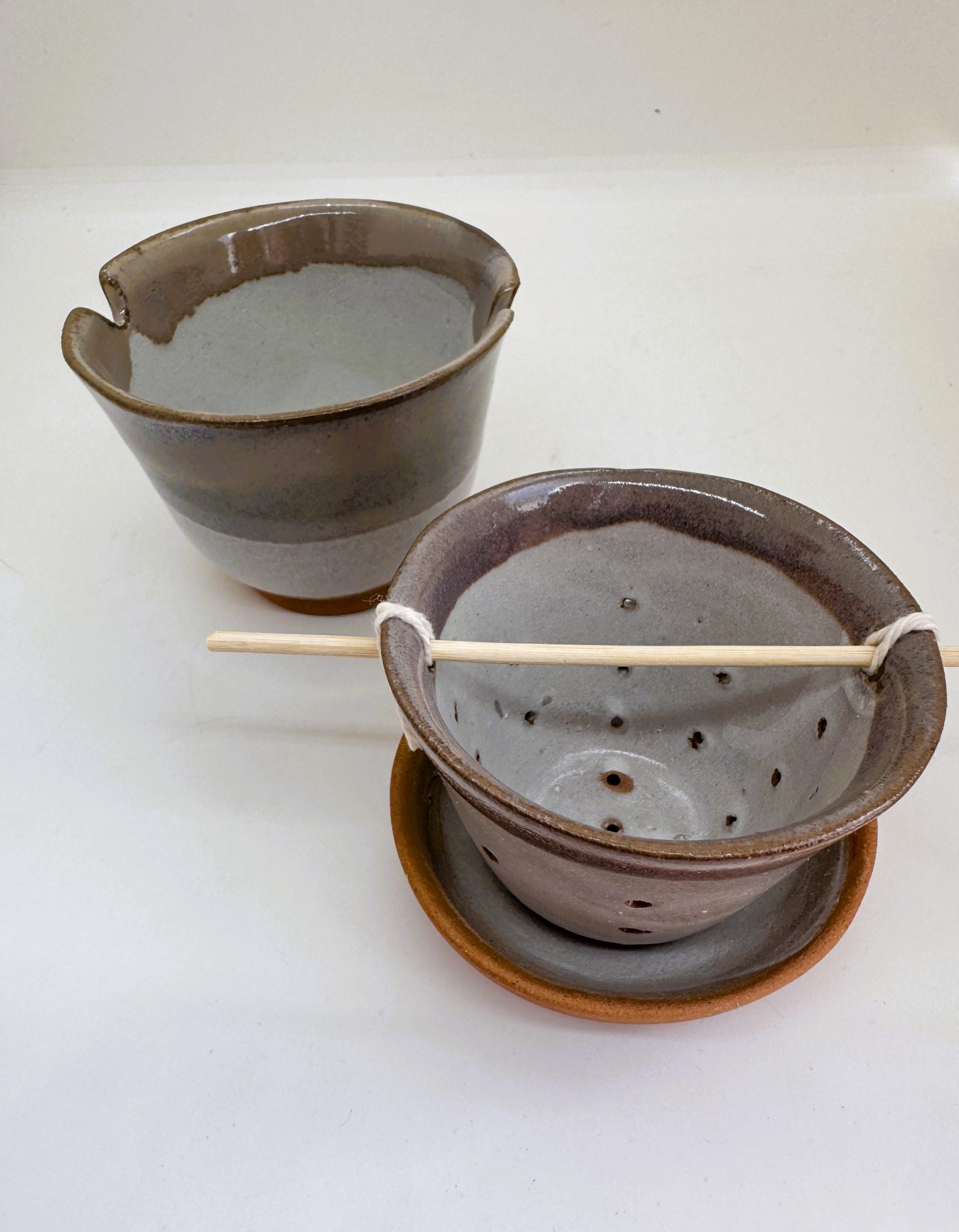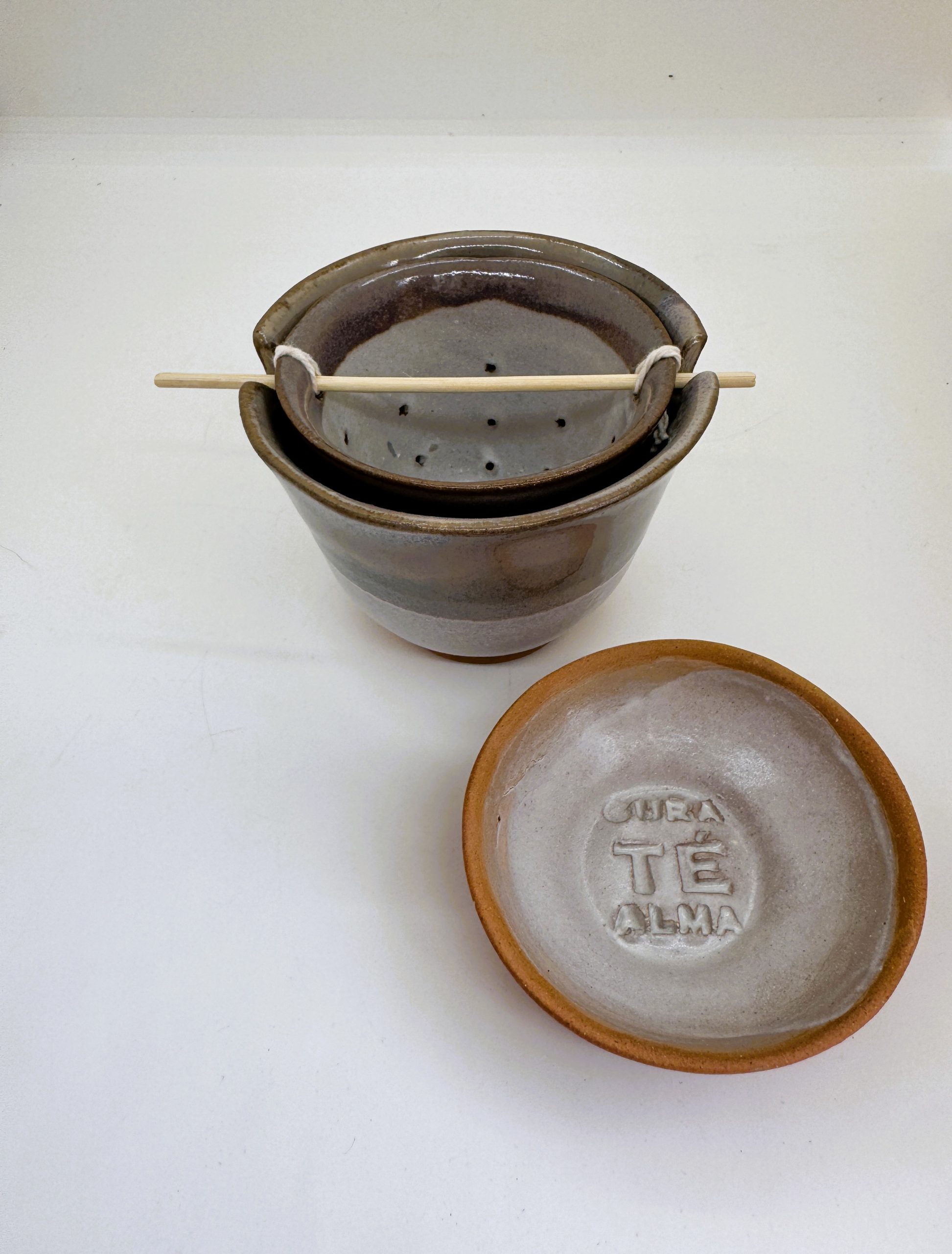 Cuenco tres piezas: cuenco, colador y plato. Hecho con cerámica gres.