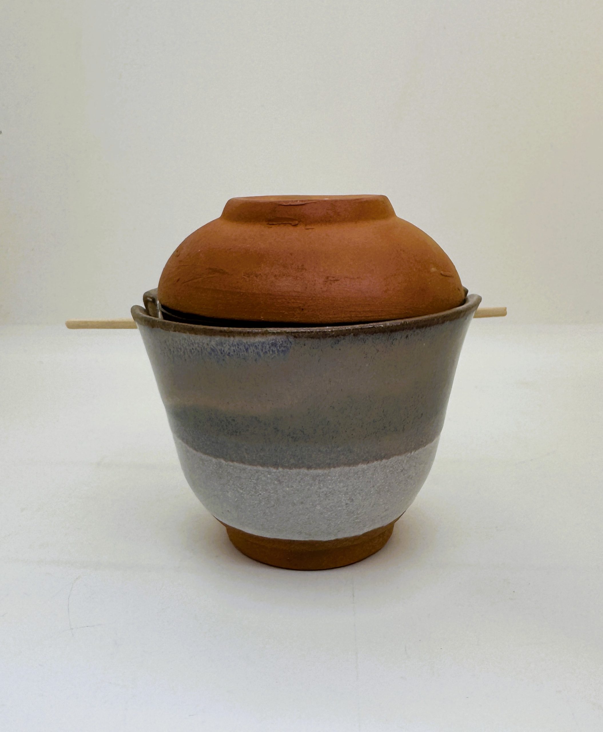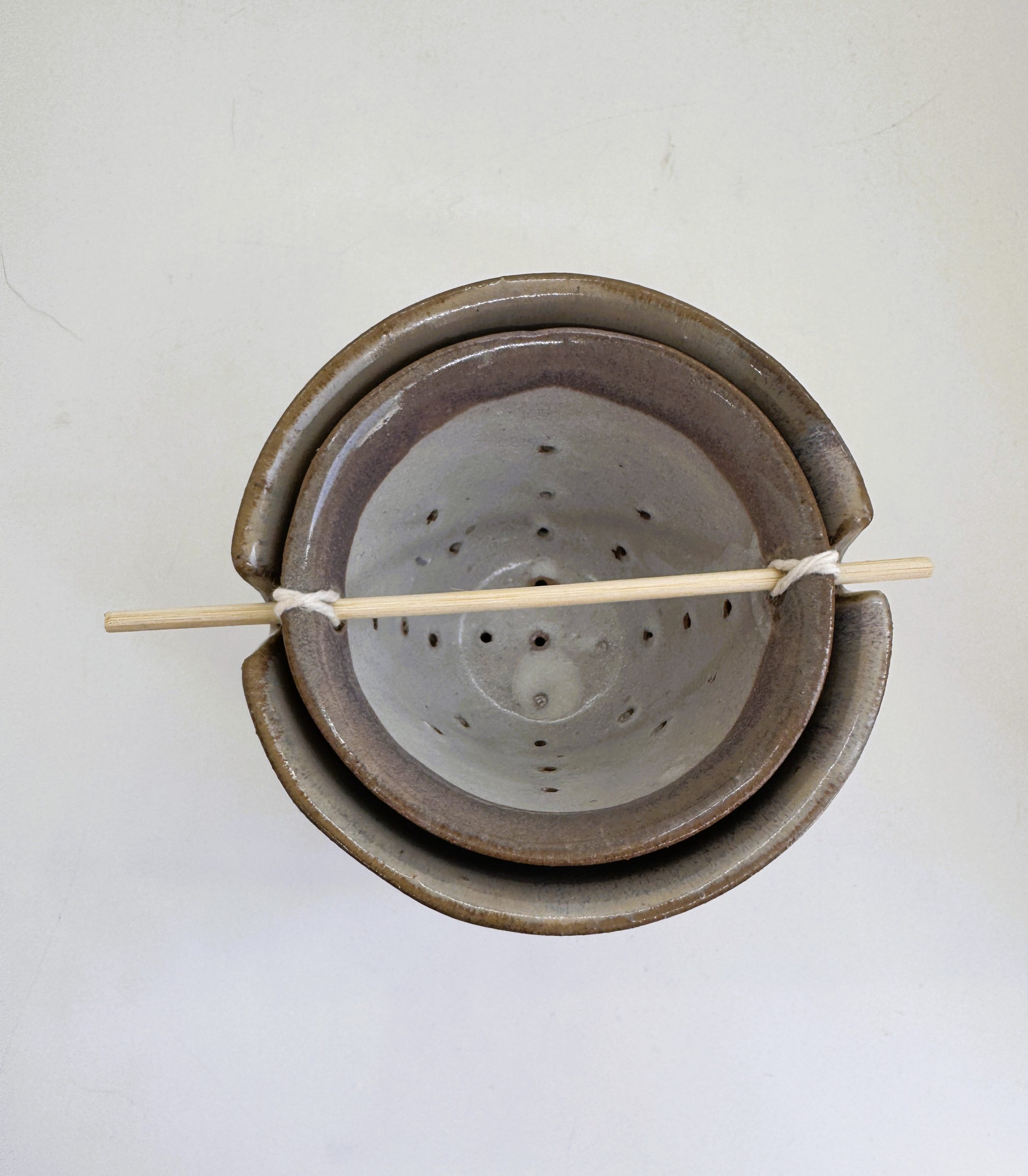 Cuenco de Cerámica Gres con Colador Blanco y Visón
